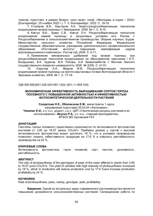 5. Чиков В.И. Эволюция представлений о связи фотосинтеза с продуктивностью растений // Физиология растений. 2008. № 1. Т. 55. С. 140-154. EDN: IBWWWJ
