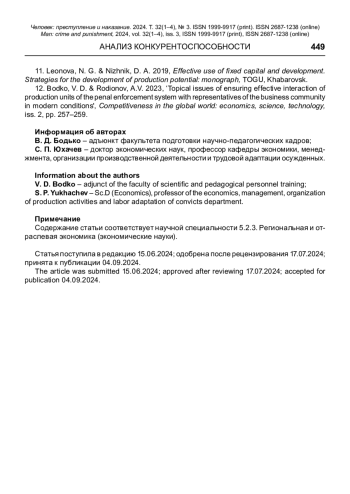 БОДЬКО В. Д., ЮХАЧЕВ С. П. СРАВНИТЕЛЬНЫЙ АНАЛИЗ ПРОИЗВОДСТВЕННОГО ПОТЕНЦИАЛА ПРЕДПРИНИМАТЕЛЬСКОЙ ДЕЯТЕЛЬНОСТИ КОММЕРЧЕСКИХ ОРГАНИЗАЦИЙ И УЧРЕЖДЕНИЙ ПРОИЗВОДСТВЕННОГО СЕКТОРА УГОЛОВНО-ИСПОЛНИТЕЛЬНОЙ СИСТЕМЫ // ЧЕЛОВЕК: ПРЕСТУПЛЕНИЕ И НАКАЗАНИЕ. 2024. Т. 32 № 3