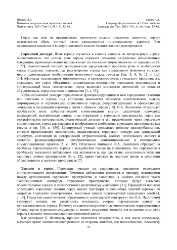 6. Леонтович О.А. Язык большого города: ключевые проблемы медиаурбанистики // Этнопсихолингвистика. № 3. 2020 (б). С. 19-34. EDN: TLRNAU
