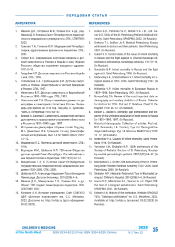 3. Губерт В.О. Современное состояние вопроса о детской смертности в России и борьбе с нею. Журнал Русского общества охранения народного здравия. 1911:9–10.