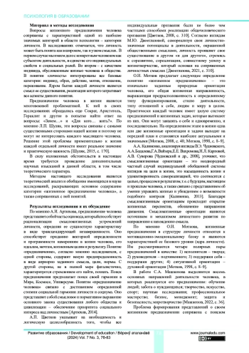 В то же время И. В. Абакумова, З. И. Брижак, М. В. Годунов считают, что в современных неопределенных условиях быстроизменяющегося мира, прежде всего у молодых людей, формируется потребительское отношение к жизни, в основе которого лежит приспособление к существующим в настоящий момент окружающим условиям. Таким образом, смысловая регуляция деятельности направлена на удержание достигнутого состояния психологического комфорта [Абакумова, Брижак, Годунов, 2020]. По мнению А. Ц. Батуевой, Н. В. Нятиной, нахождение в зоне комфорта способствует формированию эскапизма как тенденции к избеганию решения жизненных проблем, что приводит к проявлению гедонизма, стремлению максимально получать удовольствие и наслаждение, к нарциссизму [Батуева, 2020; Нятина, 2013]. Именно выход из адаптивности с ее зоной комфорта к преадаптивности, заключают И. В. Абакумова, З. И. Брижак, М. В. Годунов, символизирует о начале поисков человеком истинного смысла своей жизни и его осуществления как предназначения свыше [Абакумова, Брижак, Годунов, 2020].