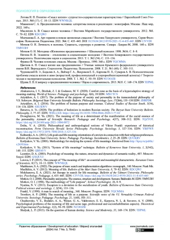 8. Котляков В. Ю. Методика исследования системы жизненных смыслов. 2003. URL: http://hpsy.ru/public/x2630.htm. EDN: RTGANT