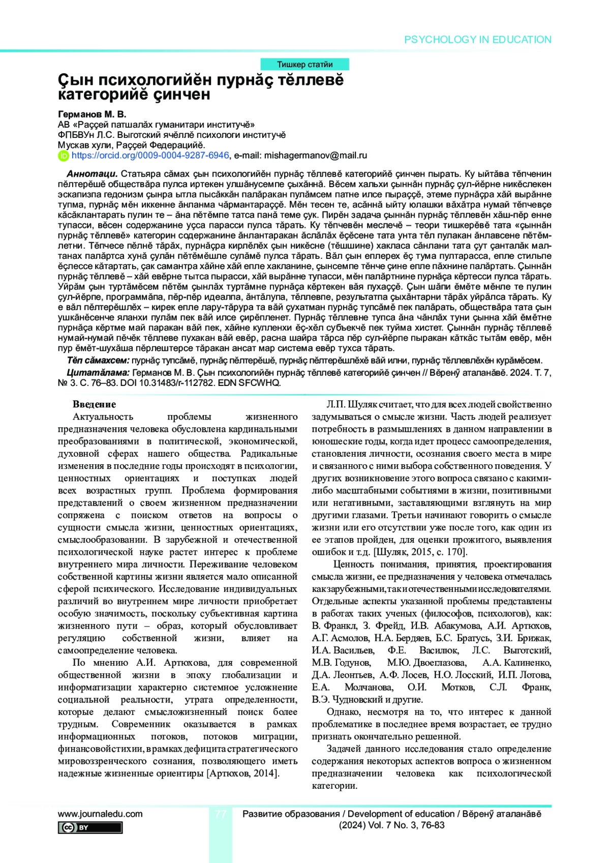 Maslikhin, A. V. (2012). Meaning of life. Bulletin of the Mari State University, 8, 79-82. EDN: RDCQWJ