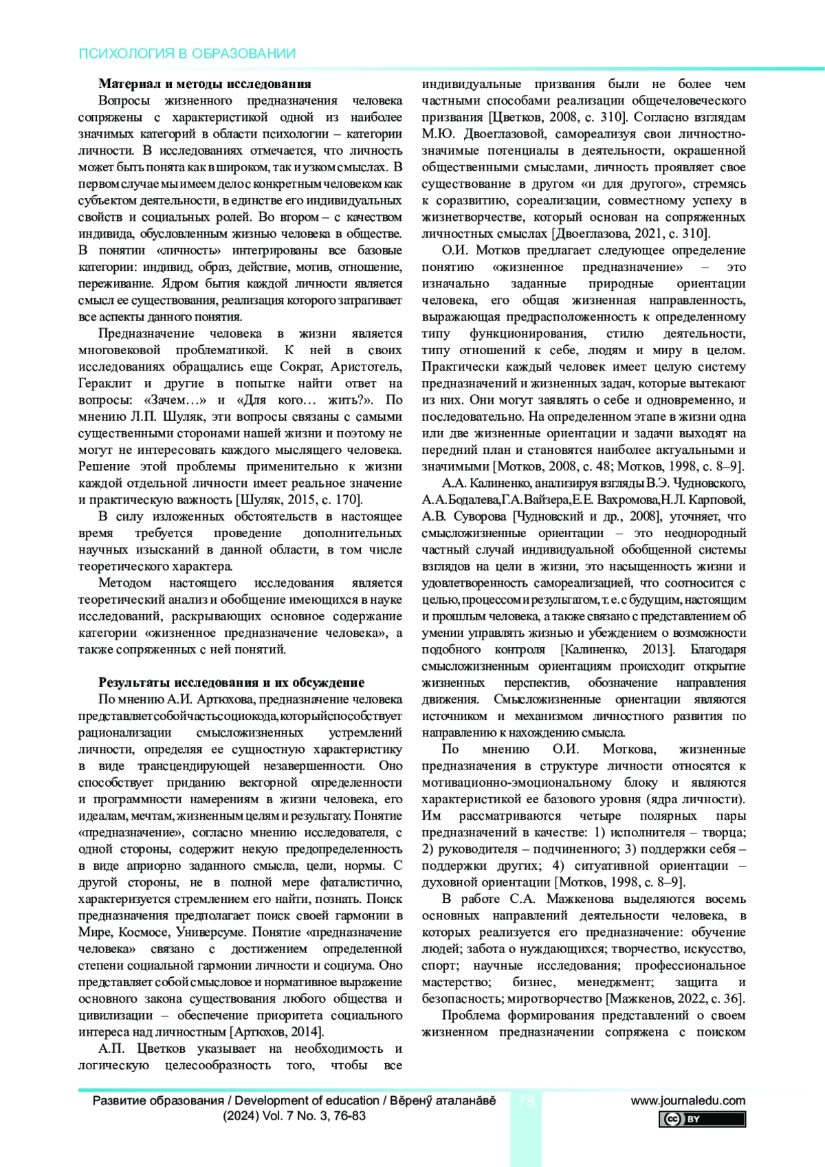 16. Мотков О. И. Методика “Жизненное предназначение” // Школьный психолог. 1998. №36. С. 8-9.