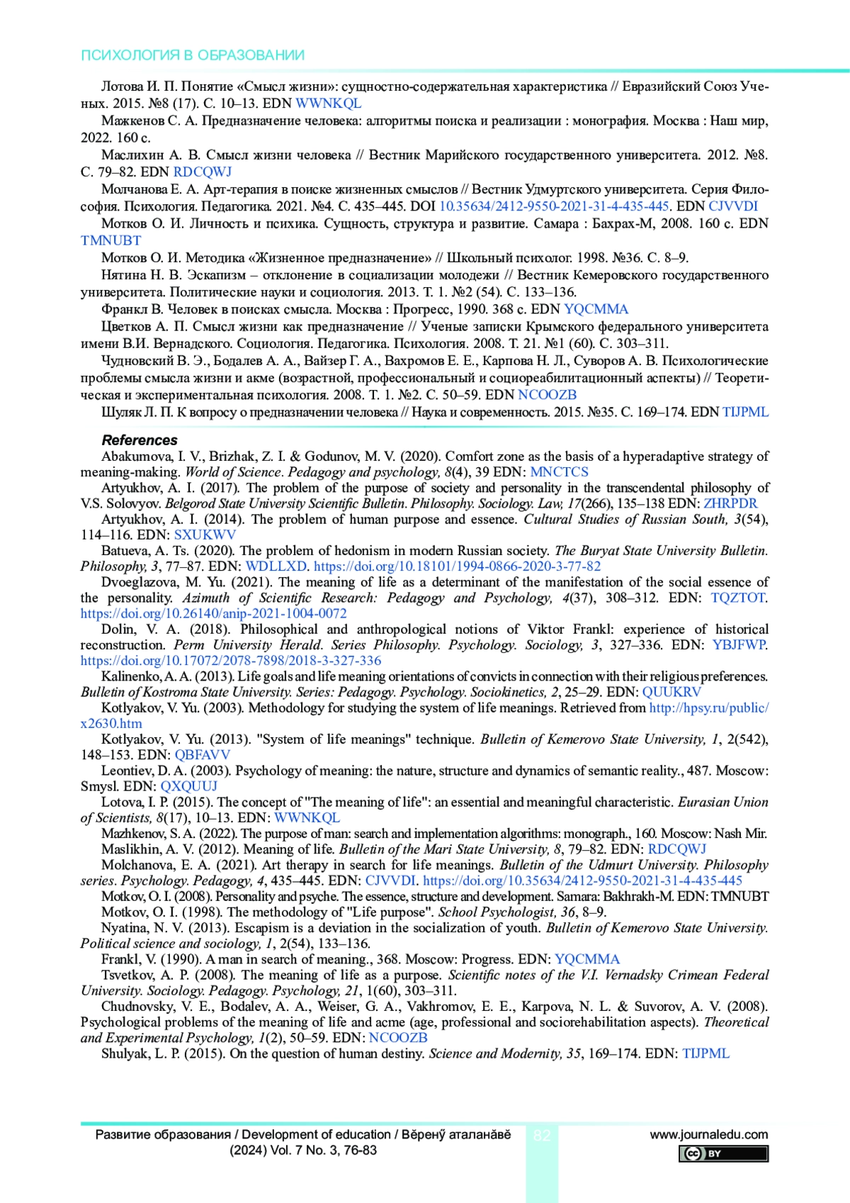 1. Абакумова И. В., Брижак З. И., Годунов М. В. Зона комфорта как основа гиперадаптивной стратегии смыслообразования // Мир науки. Педагогика и психология. 2020. Т. 8. №4. С. 39. EDN: MNCTCS