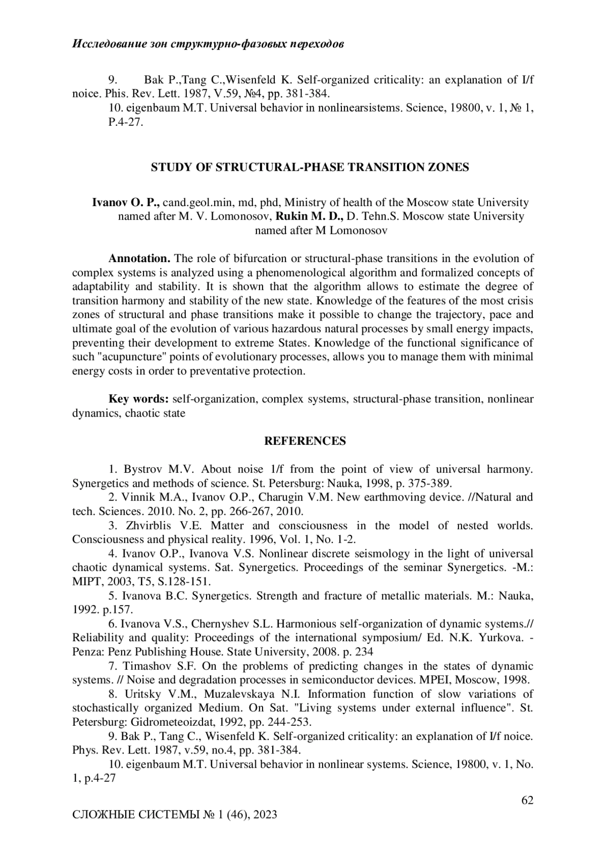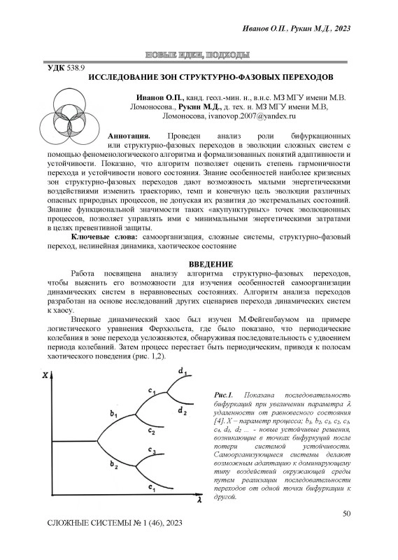 Проведен анализ роли бифуркационных или структурно-фазовых переходов в эволюции сложных систем с помощью феноменологического алгоритма и формализованных понятий адаптивности и устойчивости. Показано, что алгоритм позволяет оценить степень гармоничности перехода и устойчивости нового состояния. Знание особенностей наиболее кризисных зон структурно-фазовых переходов дают возможность малыми энергетическими воздействиями изменить траекторию, темп и конечную цель эволюции различных опасных природных процессов, не допуская их развития до экстремальных состояний. Знание функциональной значимости таких «акупунктурных» точек эволюционных процессов, позволяет управлять ими с минимальными энергетическими затратами в целях превентивной защиты.