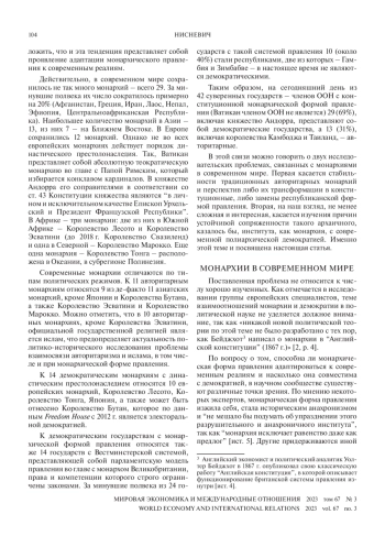 Fedorova-Kuznetsova I.V. The monarchical system of power in the modern world and its features. Obshhestvo: politika, jekonomika, pravo, 2019, no. 9 (74), pp. 35-38. (In Russ.) Available at: https://cyberleninka.ru/article/n/monarhicheskaya-sistema-vlasti-v-sovremennom-mire-i-ee-osobennosti/viewer (accessed 30.11.2022).