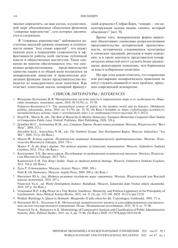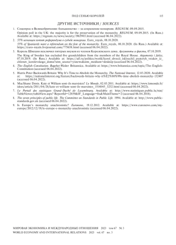 1. 	Федорова-Кузнецова И.В. Монархическая система власти в современном мире и ее особенности. Общество: политика, экономика, право, 2019, № 9 (74), сс. 35-38. EDN: YWDJXI
