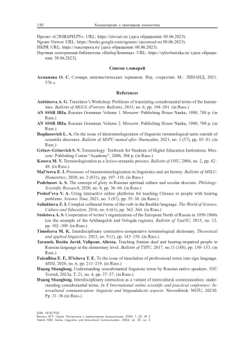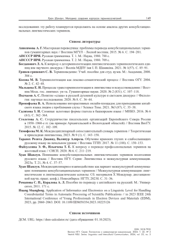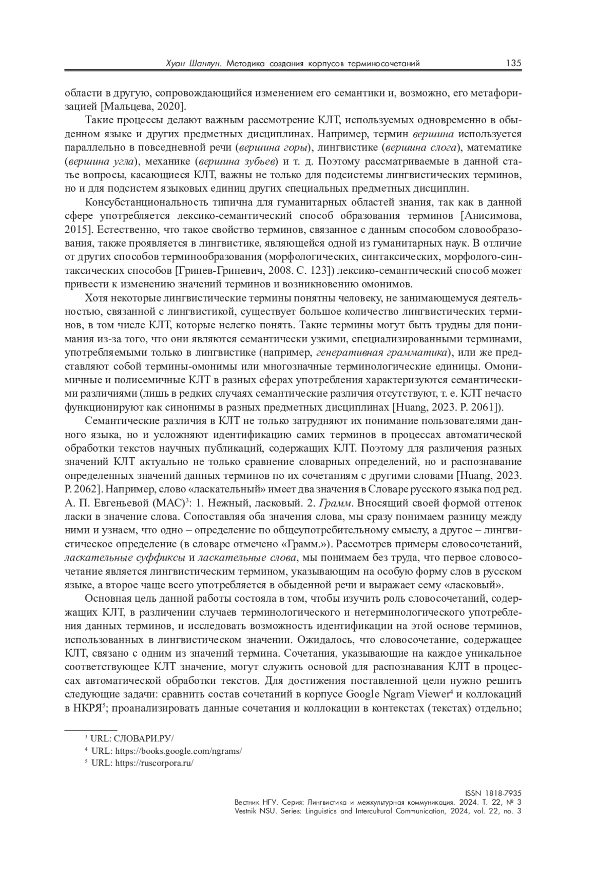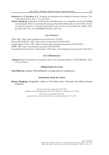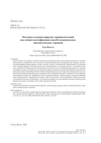 ШАНЛУН Х. МЕТОДИКА СОЗДАНИЯ КОРПУСОВ ТЕРМИНОСОЧЕТАНИЙ КАК ОСНОВА ИДЕНТИФИКАЦИИ КОНСУБСТАНЦИОНАЛЬНЫХ ЛИНГВИСТИЧЕСКИХ ТЕРМИНОВ // ВЕСТНИК НГУ. СЕРИЯ: ЛИНГВИСТИКА И МЕЖКУЛЬТУРНАЯ КОММУНИКАЦИЯ. 2024. ТОМ 22, № 3