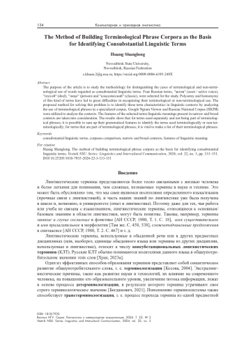 Статья: Методика создания корпусов терминосочетаний как основа идентификации консубстанциональных лингвистических терминов (2024)