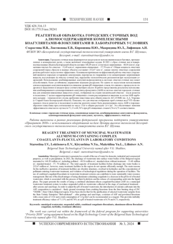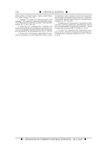 7. Vasilenko T.A., Koltun A.A. Chemical aspects of the obtaining of iron-containing coagulant-flocculant from electric steel melting slag from wastewater treatment // Solid State Phenomena. 2017. T. 265. P. 403-409. EDN: XOCRVO