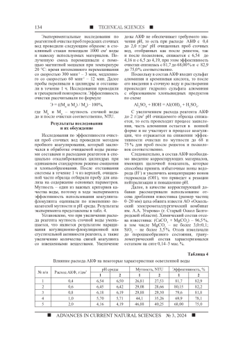 Исследовали природную воду р. Тура в устье р. Тюменка. Цель исследования - выбор наиболее эффективных коагулянтов и флокулянтов в определенных дозах для очистки воды р. Тура (в устье р. Тюменка) от взвешенных и коллоидных частиц, общего железа с последующей доочисткой методом динамической сорбции. В процессе работы были применены следующие методики: определения физических и химических показателей качества исходной воды, определения мутности, исследования эффективности различных доз коагулянта и флокулянтов, определения содержания железа в природной воде, проведения процесса коагулирования и флокулирования, проведения сорбционной доочистки. Были изучены и применены: коагулянт - Аква-Аурат 30, флокулянты - Prаestol 2531 TR, Prаestol 650 TR, Flopаm FO 4140 SH, полиакриламид, Nа2O·mSiO2· nH2O (жидкое стекло), сорбент марки КФГМ-7. Данный эксперимент позволил выявить оптимальные дозы коагулянта Аl2(OH)5Cl·6H2O и флокулянтов Prаestol 2531 TR, Prаestol 650 TR, Flopаm FO 4140 SH, полиакриламида, жидкого стекла, максимально снижающих концентрацию общего железа и мутности до величин, соответствующих санитарным правилам и нормам. Результаты исследования в дальнейшем могут быть использованы для очистки воды на водоочистных сооружениях.