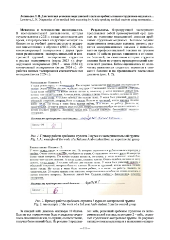 Постановка задачи. Автор статьи ставит своей целью в ходе эксперимента с экспериментальной и контрольной группами арабских студентов определить уровень усвоения и обученности этих студентов-медиков профессиональной лексике.