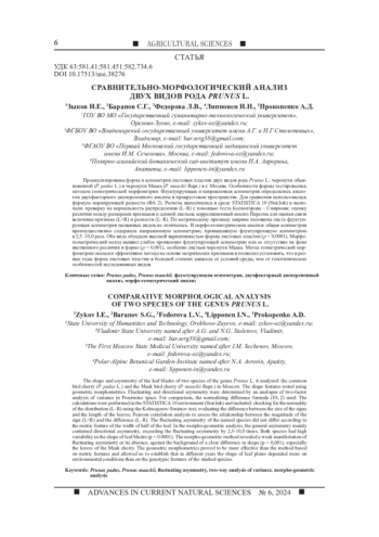 1. Зыков И.Е., Баранов С.Г., Полоскова Е.Ю., Липпонен И.Н., Гончарова О.А., Прокопенко А.Д. Популяционная изменчивость листовых пластин Prunus adus L. // Успехи современного естествознания, 2022. № 4. С. 29-34. DOI: 10.17513/use37805 EDN: RTDOHG