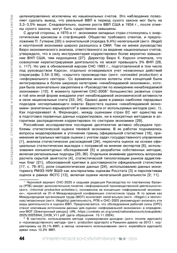 9. Иванов Ю. Н. К вопросу о включении в ВВП оценки нелегальной деятельности // Вопросы статистики. 2014. № 3. С. 46-48. EDN: RWTVAP