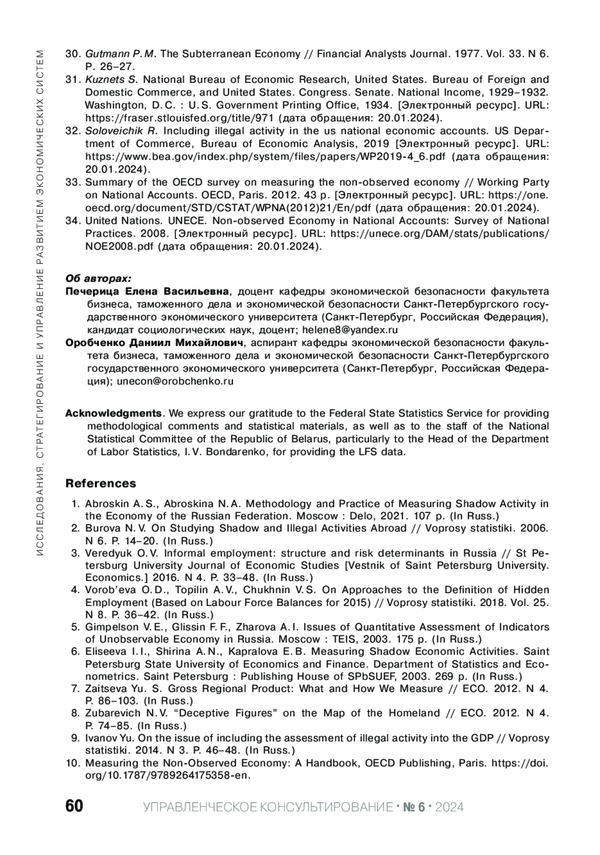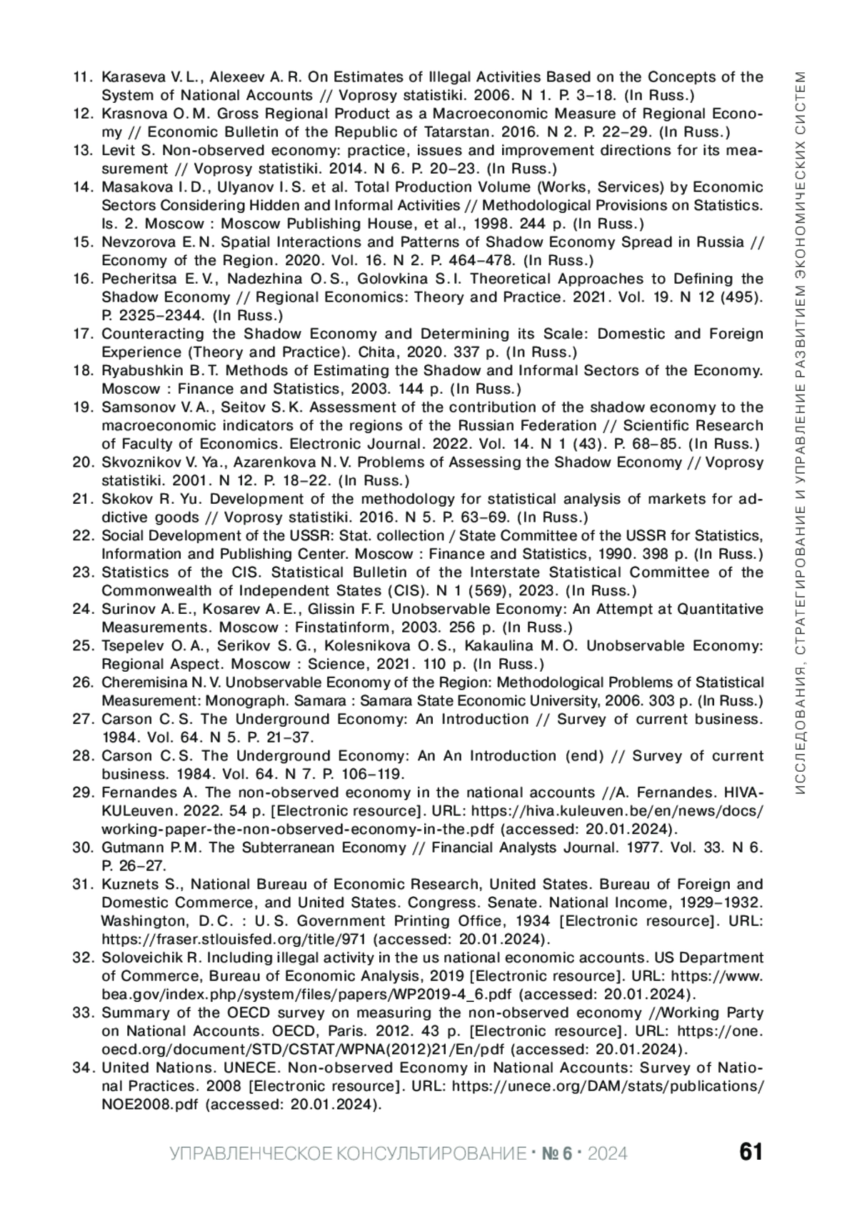34. United Nations. UNECE. Non-observed Economy in National Accounts: Survey of National Practices. 2008.. URL: https://unece.org/DAM/stats/publications/NOE2008.pdf (дата обращения: 20.01.2024).
