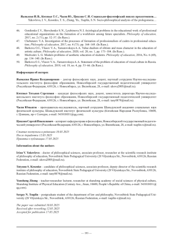 28. Молотков Ю. И. Рябчун И. П. Исследование профессиональной ориентации молодежи и возможности гармонизации жизненного цикла личности // Философия образования. 2019. Т. 19, № 3. С. 71-84.