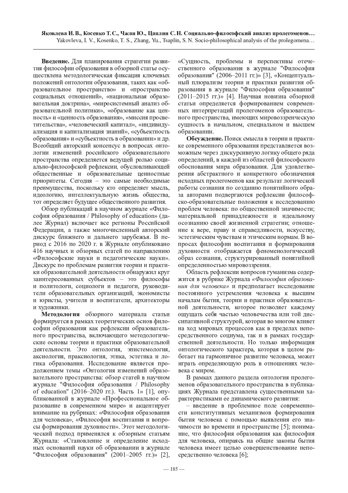 3. Яковлева И. В., Косенко Т. С. Сущность, проблемы и перспективы отечественного образования в журнале «Философия образования» (2006-2011 гг.) // Философия образования. 2021. Т. 21, № 4. С. 39-114.