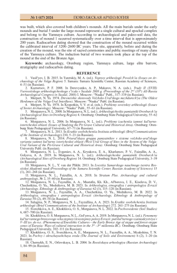 17. Хохлова О.С., Сверчкова А.Э., Моргунова Н.Л., Файзуллин А.А., Мякшина Т.Н. Основные приёмы строительства курганов ямной культуры в Южном Приуралье // Почвы и окружающая среда. 2023. Т. 6. № 2. С.1-20. EDN: HEAUPF