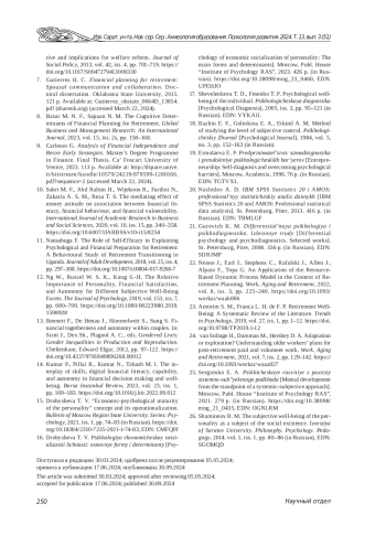 8. Basar M. N. F., Sapuan N. M. Th e Cognitive Determinants of Financial Planning for Retirement // Global Business and Management Research: An International Journal. 2023. Vol. 15, iss. 2s. P. 158-168.