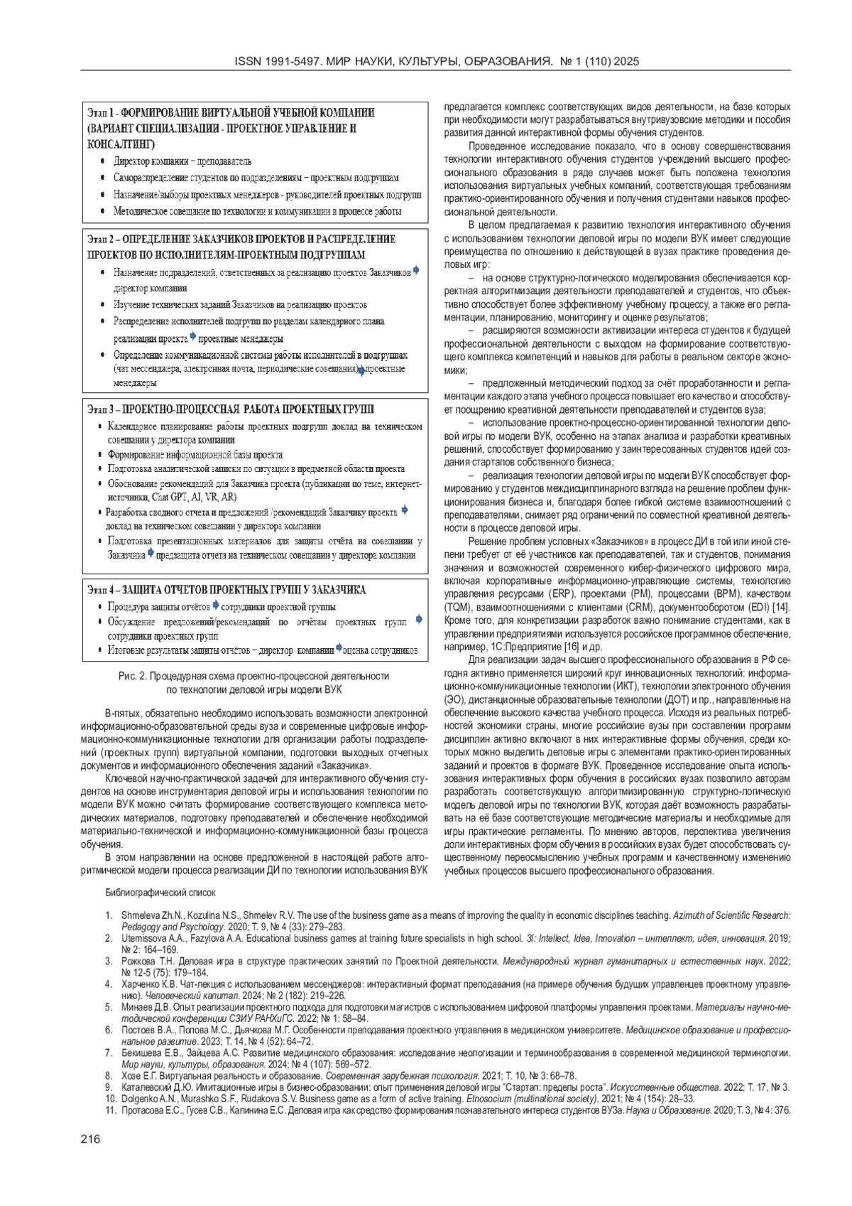 3. Рожкова Т.Н. Деловая игра в структуре практических занятий по Проектной деятельности. Международный журнал гуманитарных и естественных наук. 2022; № 12-5 (75): 179-184. EDN: IKBFEX