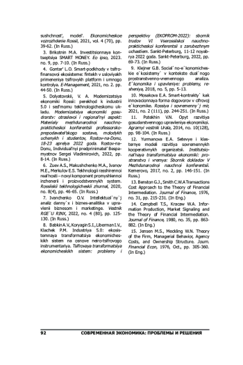 2. Бабкин А.В., Корягин С.И., Либерман И.В., Клачек П.М. Индустрия 5.0: экосистемная трансформация экономических систем на основе нейроцифрового инструментария. Цифровая трансформация экономических систем: проблемы и перспективыi (ЭКОПРОМ-2022): сборник трудов VI Всероссийской научнопрактической конференции с зарубежным участием. Санкт-Петербург, 11-12 ноября 2022 года. Санкт-Петербург, 2022, с. 69-73. EDN: JELWHA