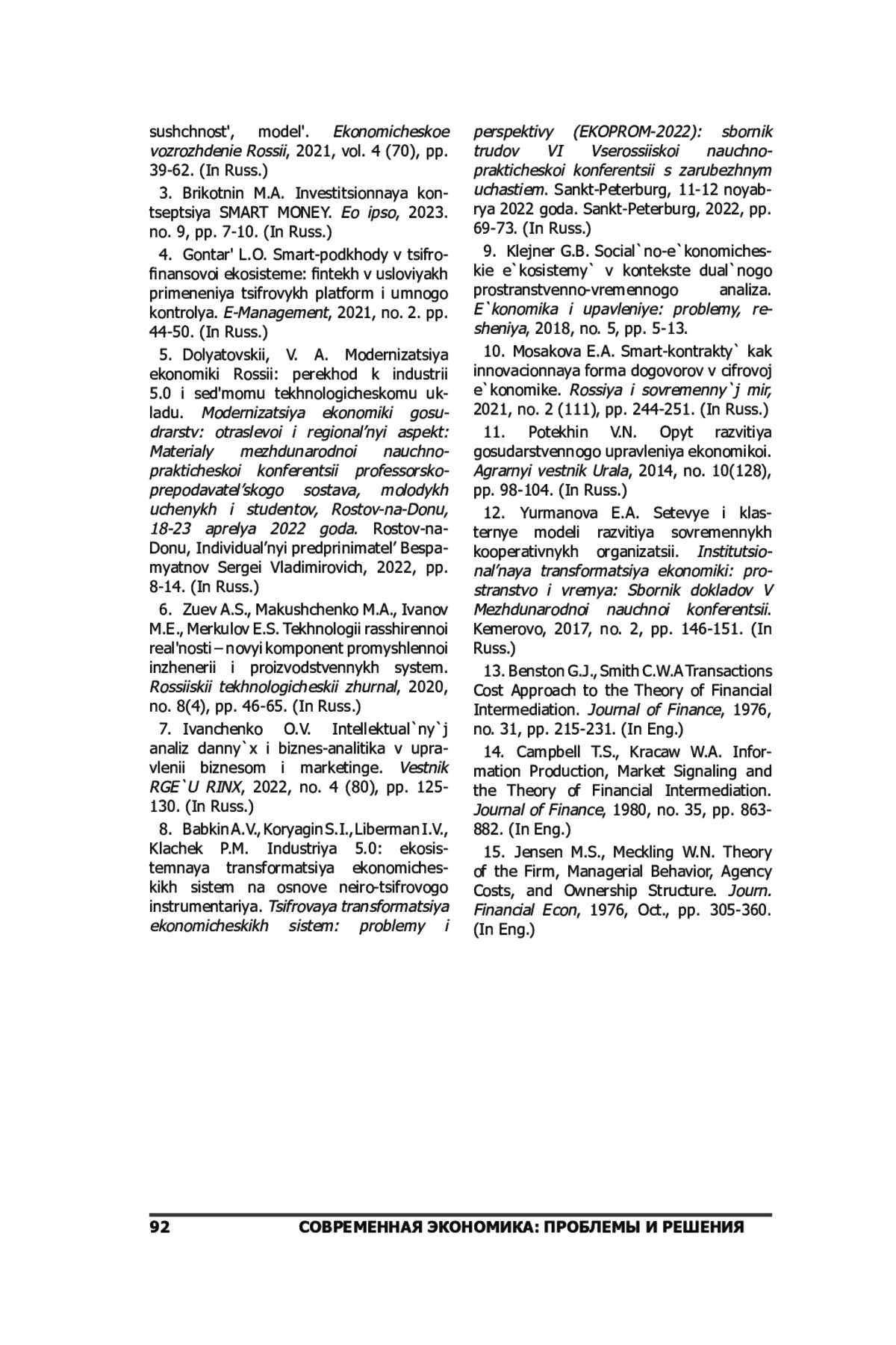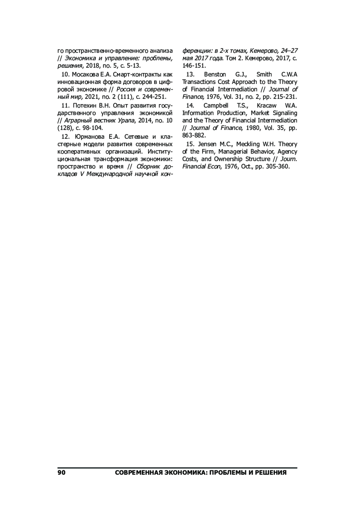 13. Benston G.J., Smith C.W.A Transactions Cost Approach to the Theory of Financial Intermediation // Journal of Finance, 1976, Vol. 31, no. 2, pp. 215-231.