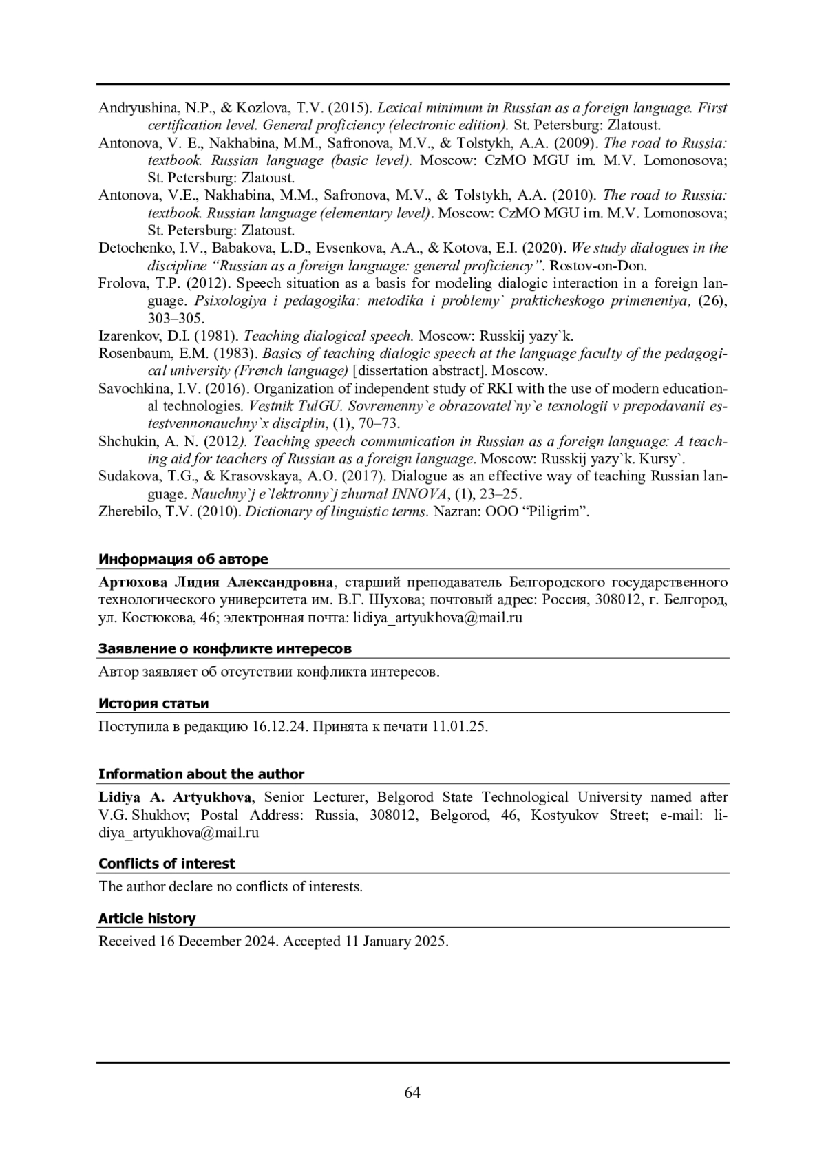 5. Деточенко И.В., Бабакова Л.Д., Евсенкова А.А., Котова Е.И. Учим диалоги по дисциплине “Русский язык как иностранный: общее владение”. Ростов-на-Дону, 2020. 40 с.
