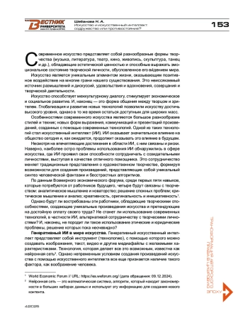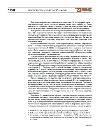 2. Ван Кэин. Искусственный интеллект и будущие пути развития искусства // Культура и цивилизация. - 2023. - Т. 13. - № 7А. - С. 146-153.