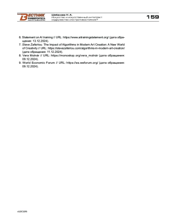7. Steve Zafeiriou. The Impact of Algorithms in Modern Art Creation: A New World of Creativity // URL: https://stevezafeiriou.com/algorithms-in-modern-art-creation (дата обращения: 11.12.2024).