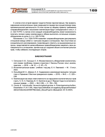 5. Ciesla B. Individuelle Verwertungsbefugnisse in Patentgemeinschaften, Dissertation. P. 24 // URL: https://opus.bibliothek.uni-augsburg.de/opus4/frontdoor/deliver/index/docId/4087/file/ciesla_diss.pdf (дата обращения: 20.12.2024).