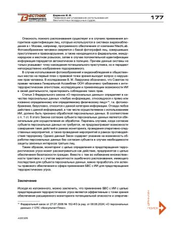 4. Лаврухин М. В. Использование искусственного интеллекта в противодействии терроризму и оптимизация требований обеспечения транспортной безопасности к объектам дорожного хозяйства // Транспортное право и безопасность. - 2022. - № 4 (44).