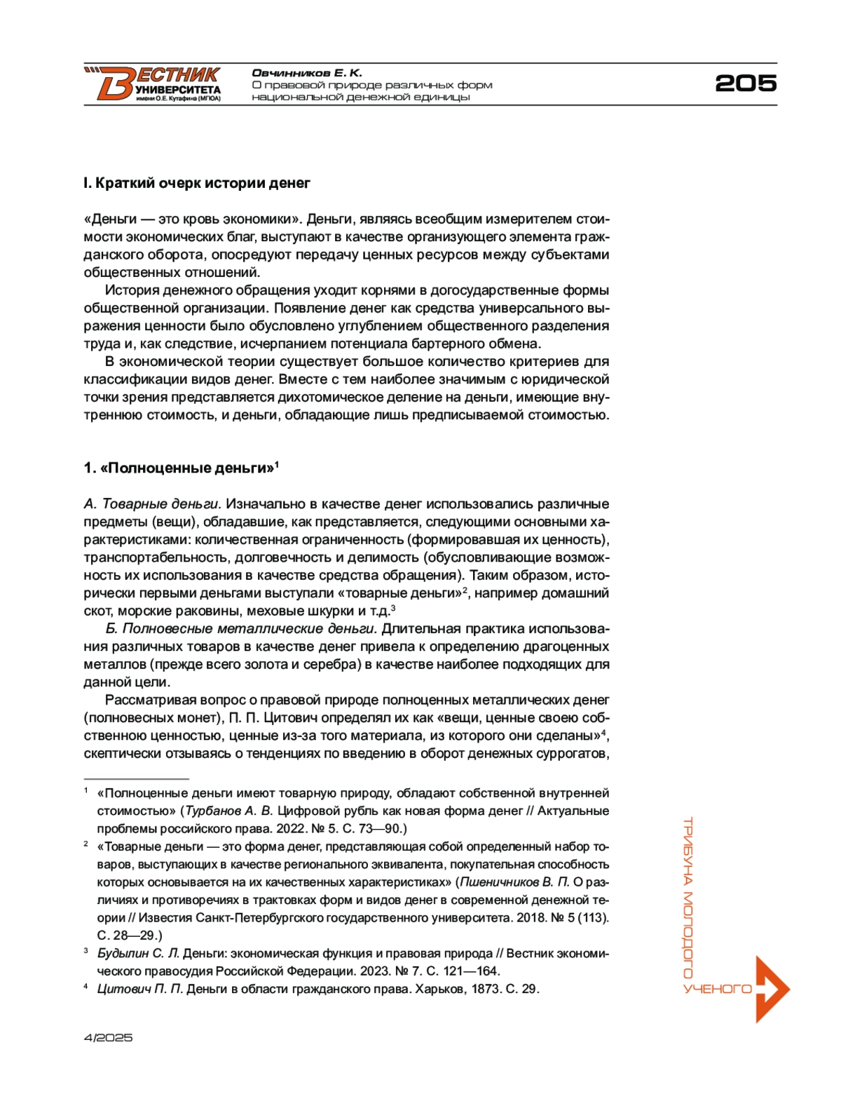 3. Будылин С. Л. Деньги: экономическая функция и правовая природа // Вестник экономического правосудия Российской Федерации. - 2023. - № 7. - С. 121-164.