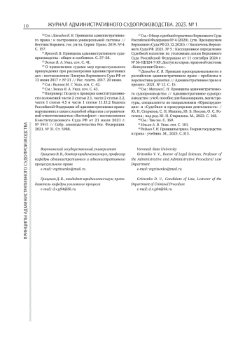 10. Ярков В. В. Принципы административного судопроизводства: общее и особенное // Вестник гражданского процесса. 2023. № 6. С. 36. EDN: DMPDEQ