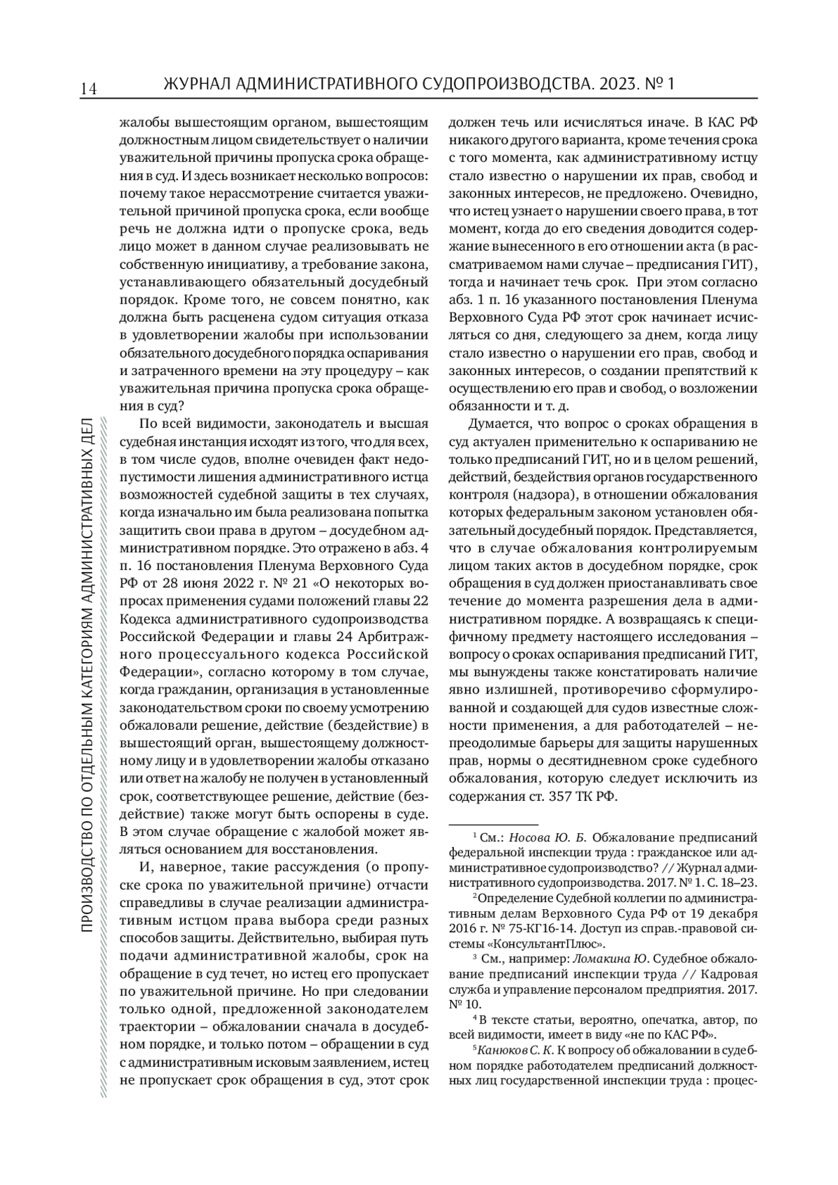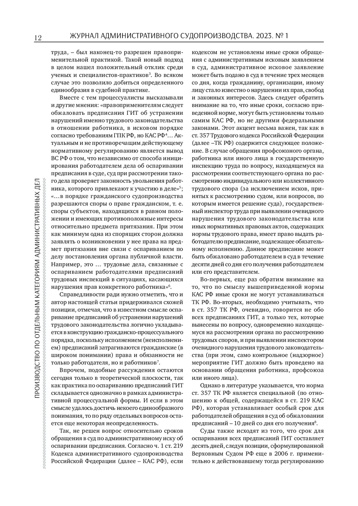 Анализируются положения Кодекса административного судопроизводства РФ, Трудового кодекса РФ о сроках оспаривания предписаний государственной инспекции труда. Делается вывод о необходимости исключения из трудового законодательства соответствующих правовых норм. Предлагается подход к пониманию течения срока обращения в суд с административным иском об отмене предписания государственной инспекции труда после реализации обязательного досудебного порядка обжалования.