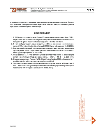 6. Уголовную ответственность за онлайн-проституцию вводят в Казахстане // URL:https://orda.kz/ugolovnuju-otvetstvennost-za-onlajn-prostituciju-vvodjat-vkazahstane-386701 (дата обращения: 10.09.2024).