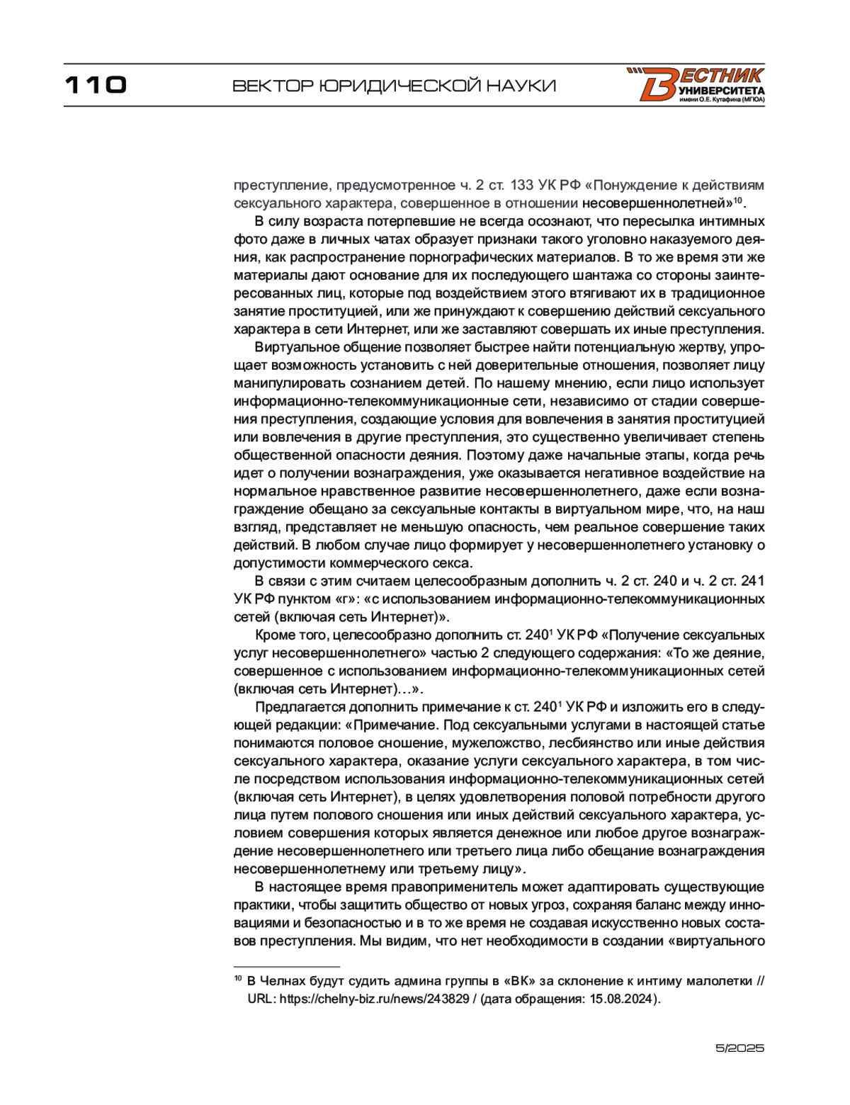 2. В Челнах будут судить админа группы в «ВК» за склонение к интиму малолетки // URL: https://chelny-biz.ru/news/243829 / (дата обращения: 15.08.2024).