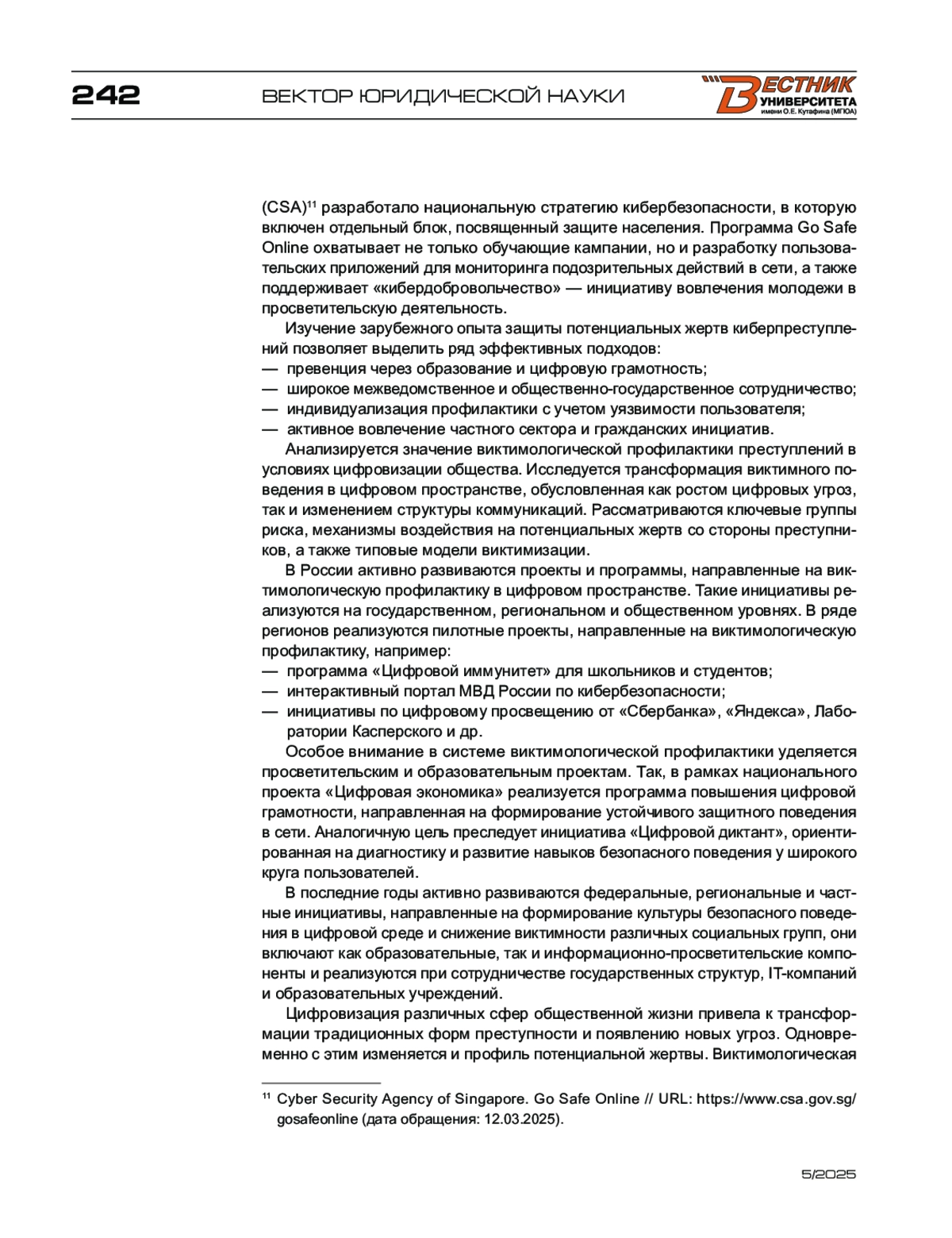 7. Cyber Security Agency of Singapore. Go Safe Online // URL: https://www.csa.gov.sg/gosafeonline (дата обращения: 12.03.2025).