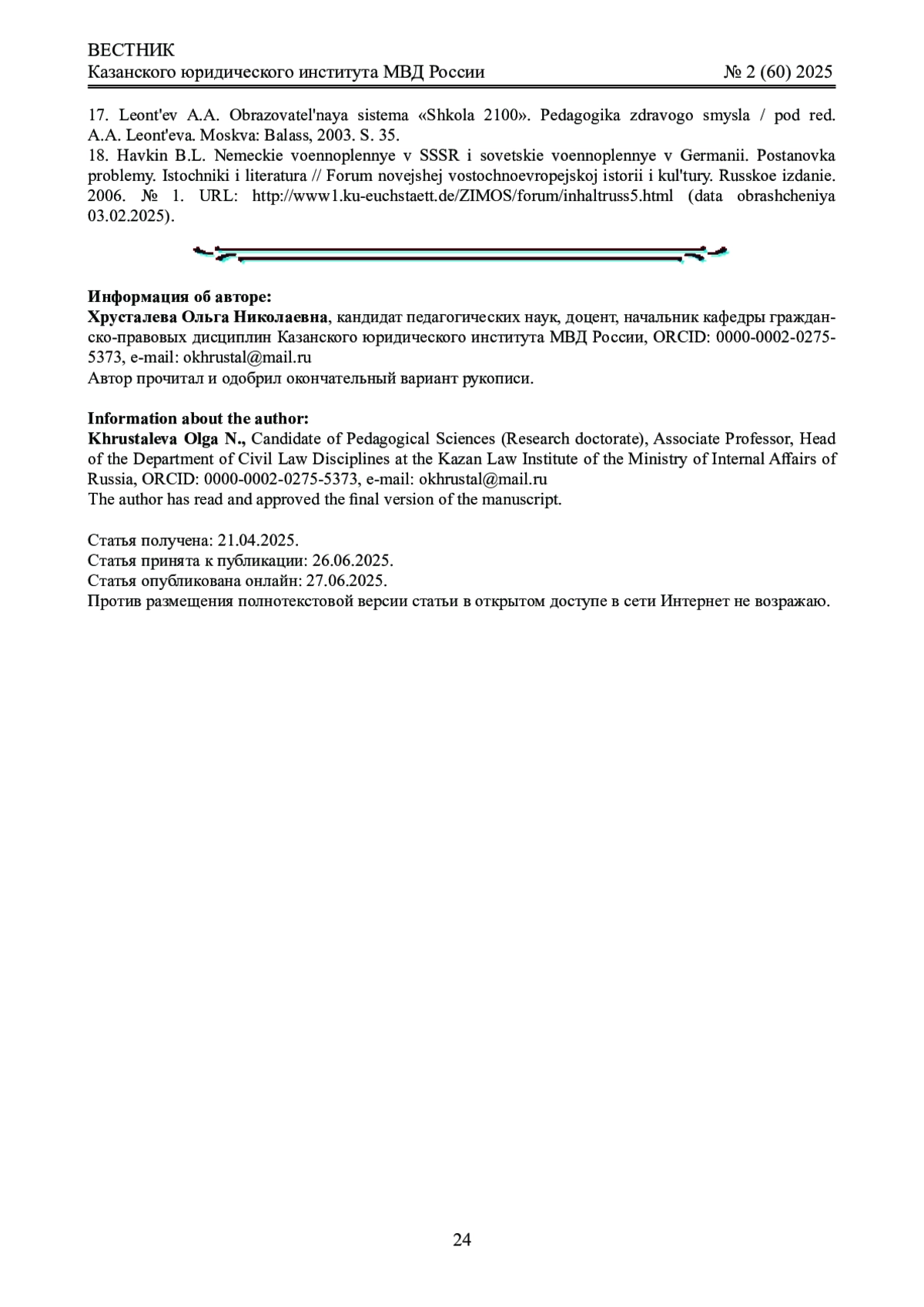 1. Смирнов А.Е., Аграфонов М.Ю. “Жало” приказа // Вестник Восточно-Сибирского института МВД России. 2015. № 1. С. 77 - 85. EDN: TNYFBR