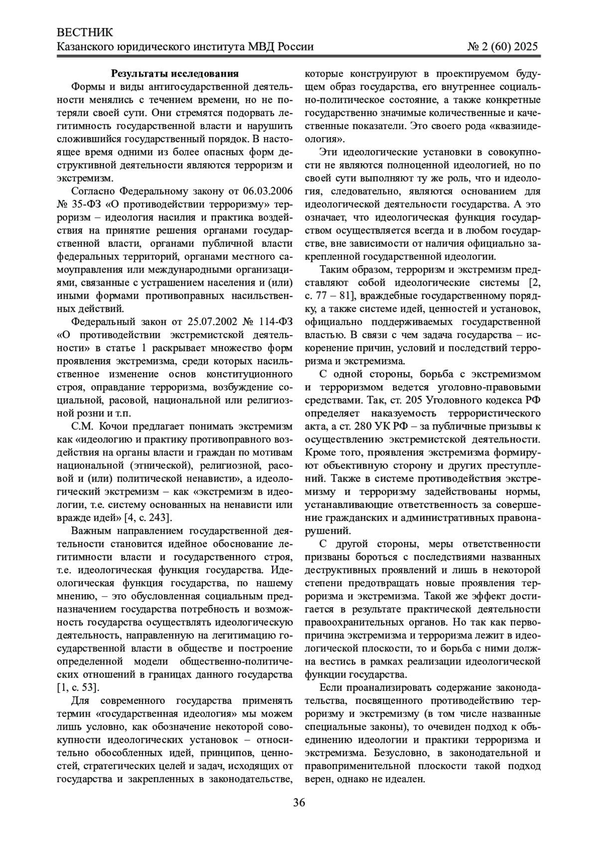 4. Кочои С.М. О качестве уголовно-правового регулирования ответственности за экстремизм и идеологический экстремизм // Всероссийский криминологический журнал. 2022. Т. 16. № 2. С. 240 - 247. ;. DOI: 10.17150/2500-4255.2022.16(2).240-247 EDN: BAQLYQ
