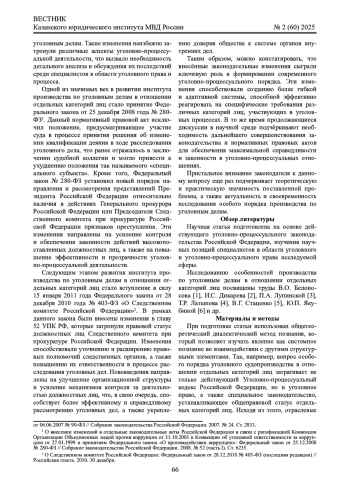 11. Дрозденко А.С. Проблемы производства по уголовным делам в отношении отдельных категорий граждан // Наука. Практика. Право. 2022. № 4. С. 193.
