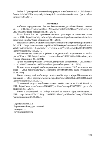 5. Walles F. Примеры объективной информации и необъективной. - URL: https://fb.ru/article/162167/primeryi-obyektivnoy-informatsii-i-neobyektivnoy (дата обращения: 15.01.2021).