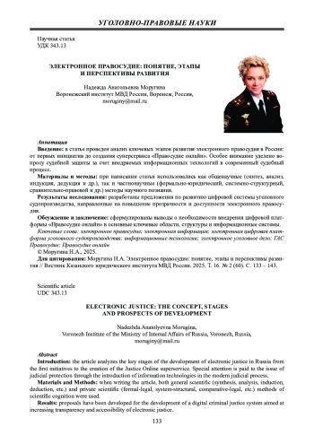 Результаты исследования: разработаны предложения по развитию цифровой системы уголовного судопроизводства, направленные на повышение прозрачности и доступности электронного правосудия.