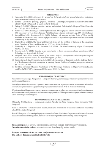 5. Ванюшкина Л. М., Коробкова Е. Н. Педагогика музейной деятельности // Точка зрения : сетевой журн. 2007. № 24. URL: https://art.1sept.ru/article.php?ID=200702412&ysclid=m7nj570ns8625241984 (дата обращения: 14. 02. 2025).