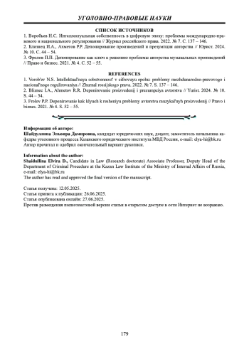 2. Близнец И.А., Ахметов Р.Р. Депонирование произведений и презумпция авторства // Юрист. 2024. № 10. С. 44 - 54. EDN: UZOQFS