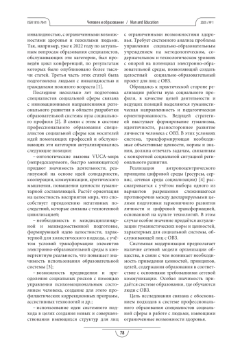 В статье проанализированы актуальные проблемы подготовки специалистов, занимающихся оказанием поддержки людям с ограниченными возможностями здоровья в системе непрерывного образования. Обобщены результаты современных исследований и постоянно обновляющейся нормативно-правовой базы, а также инновационные практики деятельности современного вуза социального профиля, готовящего специалистов к работе с людьми, имеющими ограниченные возможности здоровья. На основе образовательной модели выявлены направления работы с этой категорией обучающихся, которые необходимы для освоения специалистами специфики данной деятельности как необходимый элемент направленности профессиональной подготовки. Сделаны выводы, что предлагаемые направления работы специалистов с обучающимися, имеющими ограниченные возможности здоровья, возможно транслировать в другие образовательные социально-профессиональные учреждения для этой же категории обучающихся с учётом их специфики.