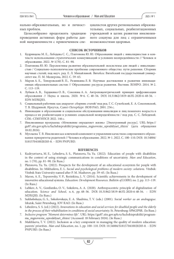 8. Мухлаева Т. В. Инклюзия как ключевой компонент в управлении качеством современного образования: приоритеты родителей // Человек и образование. 2022. № 1. 2022. C. 100-110. https://doi.org/10.54884/S181570410020203-8. - EDN: PNPUBD.