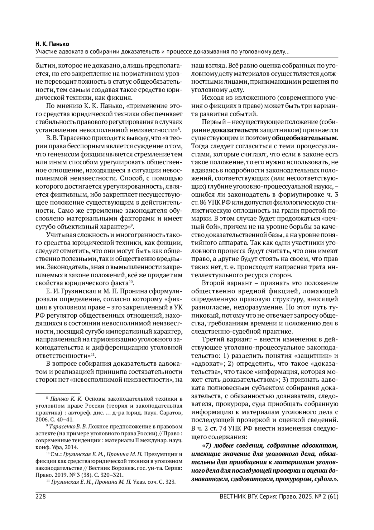 2. Грузинская Е. И., Пронина М. П. Презумпции и фикции как средства юридической техники в уголовном законодательстве // Вестник Воронеж. гос. ун-та. Серия: Право. 2019. № 3 (38). С. 320-321.