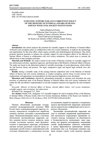 Введение: в статье рассматриваются перспективные направления развития научного обеспечения МВД России при реализации антикоррупционной политики совместно с институтами гражданского общества; проводится анализ терминологии и возможностей данной совместной деятельности, требующих научно-методической разработки. Предлагаются практические меры совершенствования научного обеспечения противодействия коррупции МВД России совместно с институтами гражданского общества с целью повышения эффективности данной деятельности.