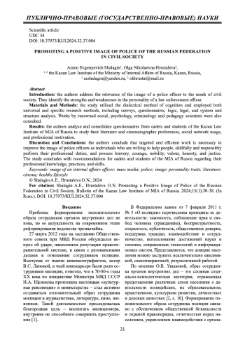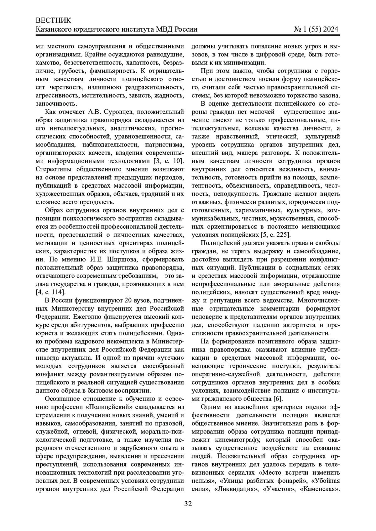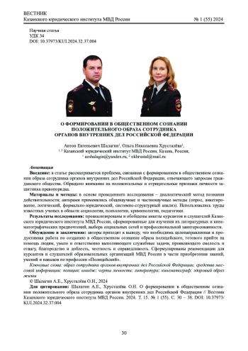 4. Ширшов И.Е. Формирование положительного образа сотрудника полиции как одно из приоритетных направлений деятельности МВД России // Отечественная юриспруденция. 2018. №7 (32). С. 113 - 115. EDN: YPOLED